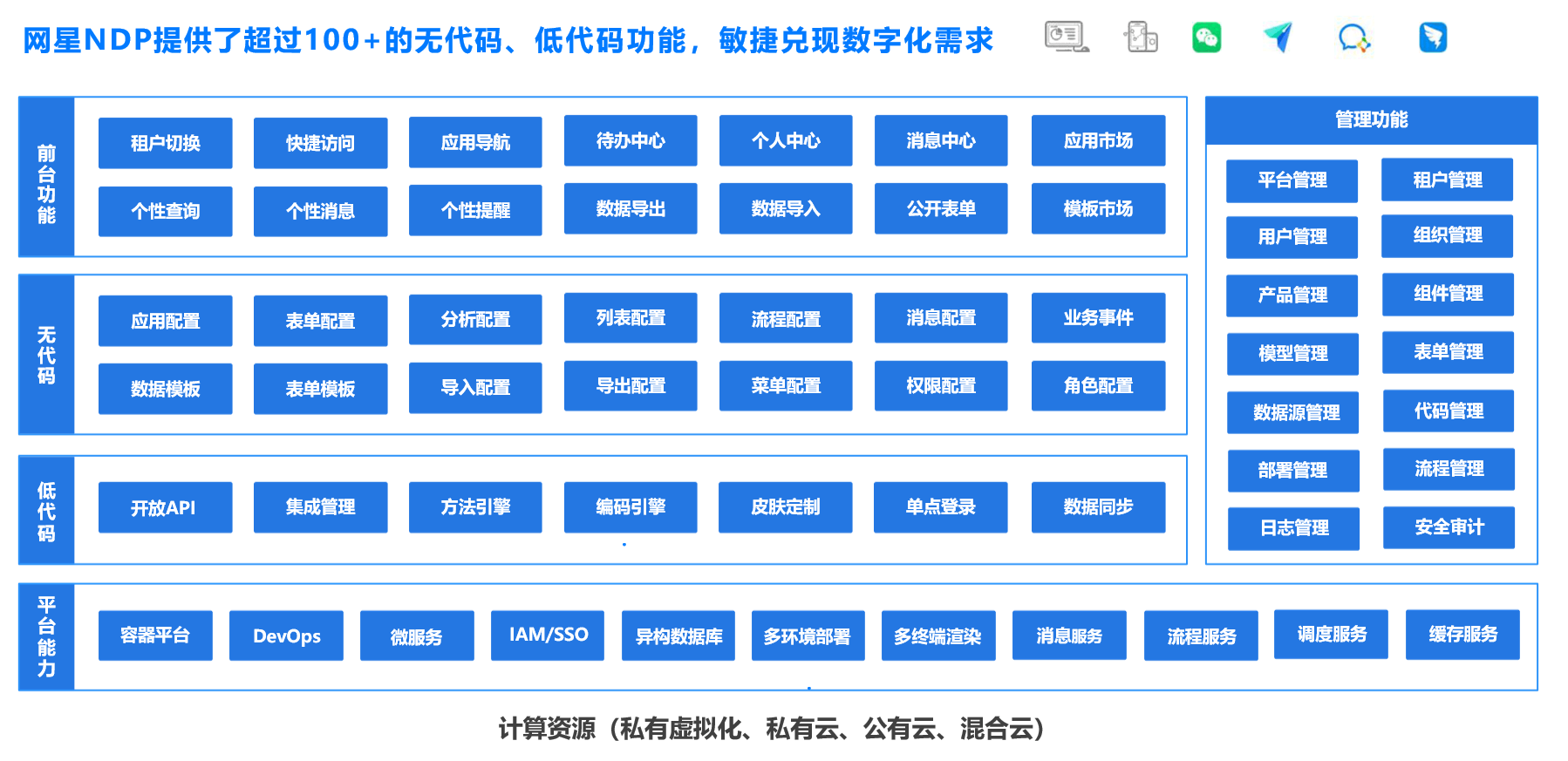 數(shù)智化意識的提升促使IT需求的爆發(fā),低代碼開發(fā)平臺為重塑IT生產(chǎn)力而生,網(wǎng)星軟件自主研發(fā)的低代碼開發(fā)平臺通過可視化方式、無需或少量編寫代碼,即可快速搭建各種應(yīng)用系統(tǒng)的開發(fā)平臺,可以有效支撐應(yīng)用交付-設(shè)計、構(gòu)建、部署、運維操作、監(jiān)控和迭代。